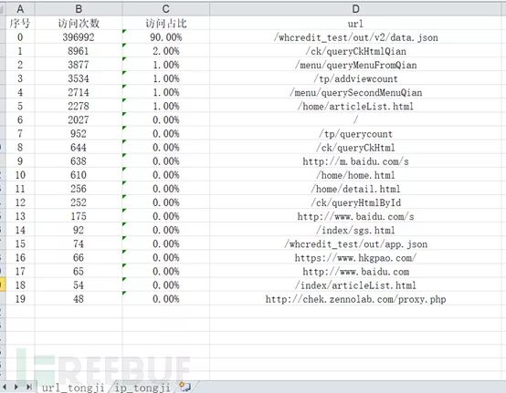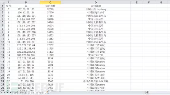 (1)目的:提取日志中所有的ip地址,并对ip归属地进行查询,并对出现次数做统计;根据日志 分析url访问情况,记录访问路径、访问次数,并将结果保存到tongji.xsl表格中