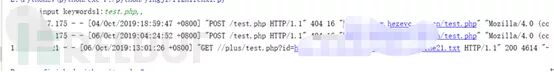 搜索10月6号或访问test.php的日志,输入格式test.php, 06/Oct/,2 输出如下: