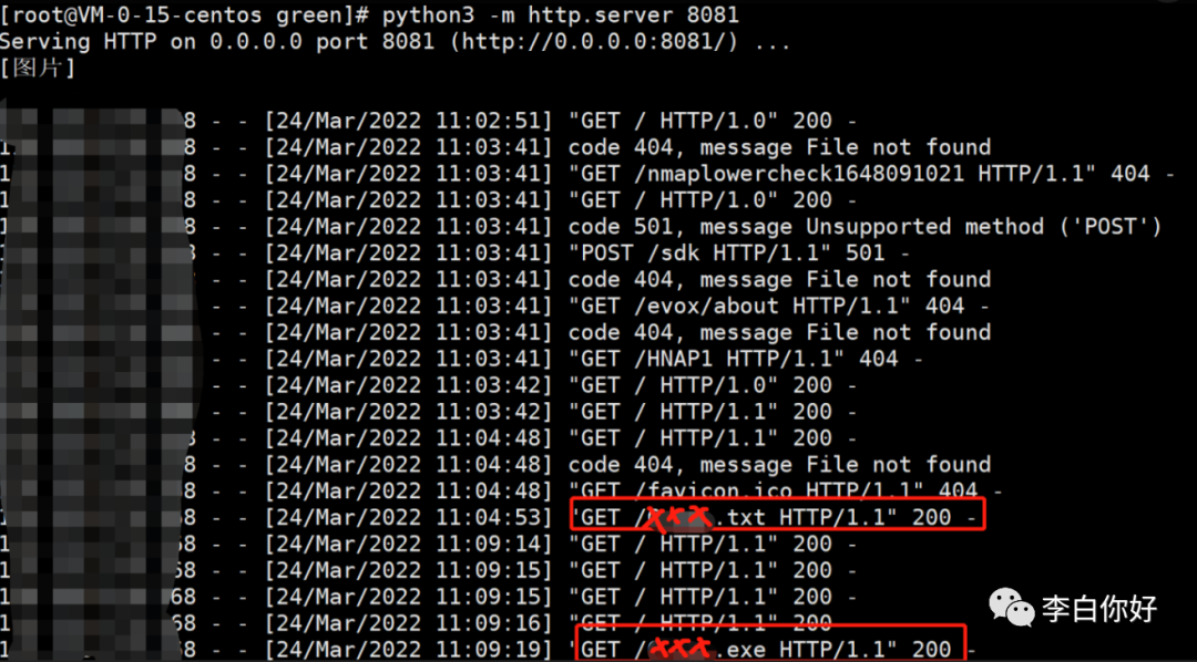 1、首先可以确认我当前这台服务器的IP(1.x.x.x)已经被防守队掌握,正在进行溯源行为,立刻关闭Python的http服务。