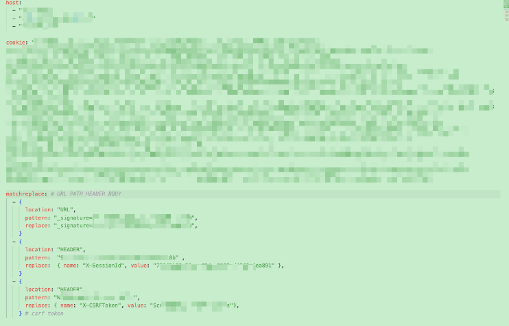 首先准备好目标系统的A、B两账号,根据系统的鉴权逻辑(Cookie、header、参数等)将A账号信息配置config/config.yml,之后登录B账号