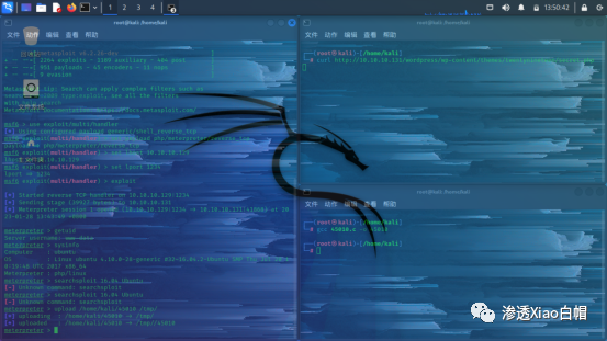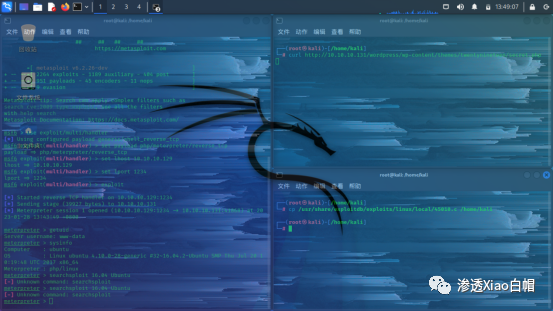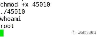 运行木马软件,提权为root用户。执行whoami命令查看当前用户,为root。提权成功。