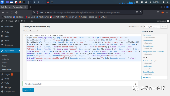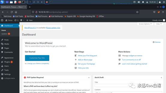 利用的到的密码和分析得到的用户名,成功登录进入WordPress后台。