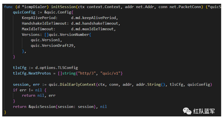 QUIC协议是一种基于UDP的低时延的互联网传输层加密协议,和TLS类似,使用加密握手来完成密钥交换。ICMP隧道中的QUIC数据是基于quic-go包实现的。