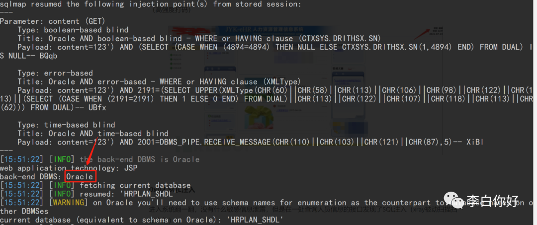 这里跑出了库名,还能看到这是一个Oracle数据库。打算继续拿shell试试。