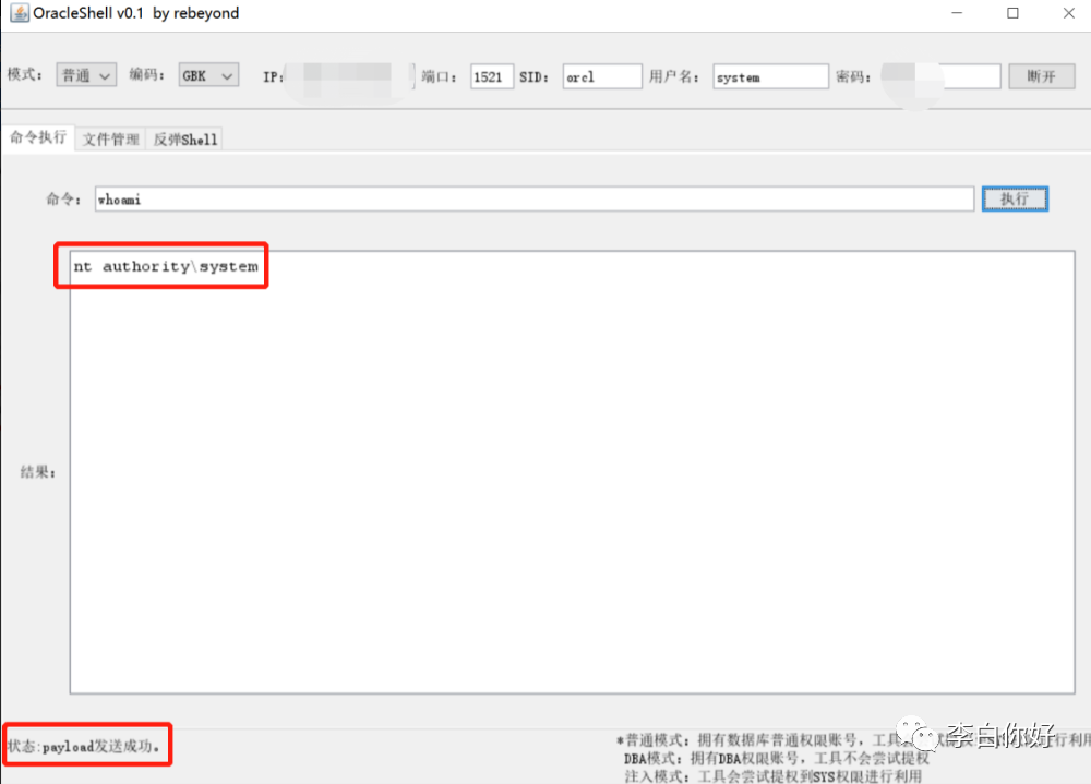 可以看出,我们还需要知道数据库的SID,用户名,密码,就可以尝试执行命令。