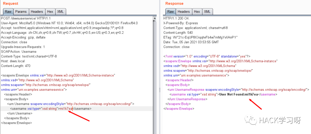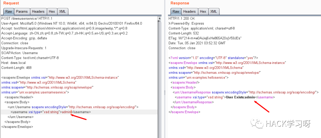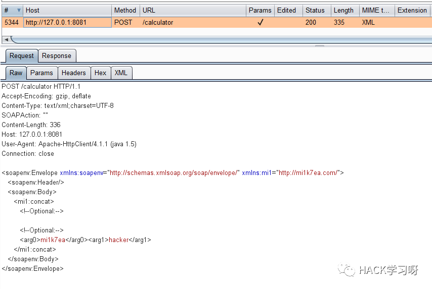 这里Burp监听到该报文,只需要修改参数值,而无须构造XML格式: