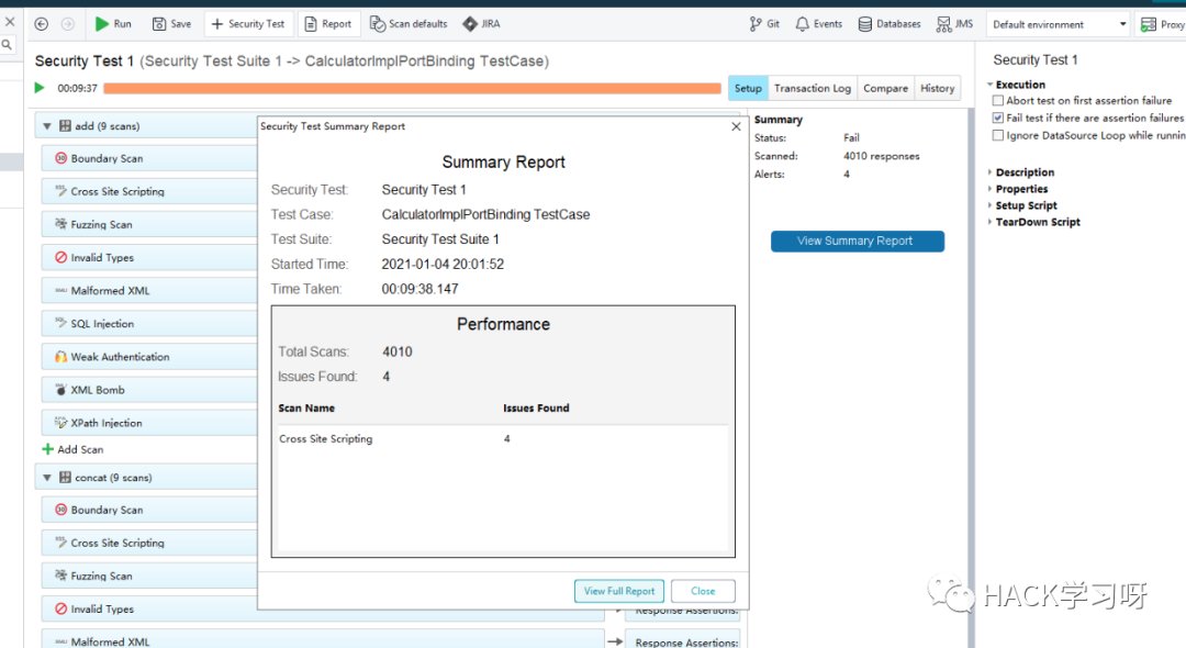 点击Next,当WSDL解析完成后,会自动生成一系列的安全测试用例,默认都选上安全测试用例,点击Finish,然后运行测试用例: