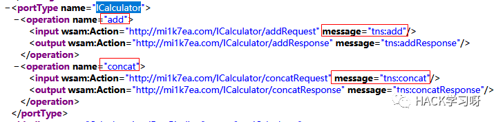 通过binding的type属性,查找对应的portType,可以获得可操作的方法和参数、返回值等: