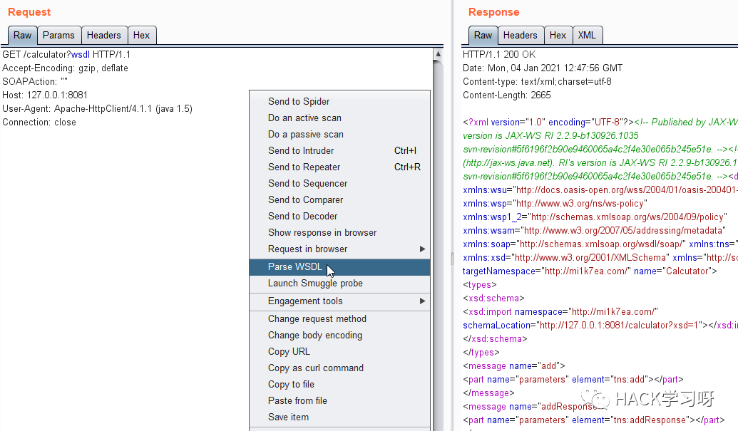 安装成功后,在Requests中右键选中Parse WSDL就能直接用了: