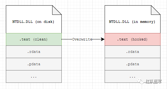 memcpy((LPVOID)((DWORD_PTR)ntdllBase + (DWORD_PTR)hookedSectionHeader->VirtualAddress), (LPVOID)((DWORD_PTR)ntdllMappingAddress + (DWORD_PTR)hookedSectionHeader->VirtualAddress), hookedSectionHeader->Misc.VirtualSize);