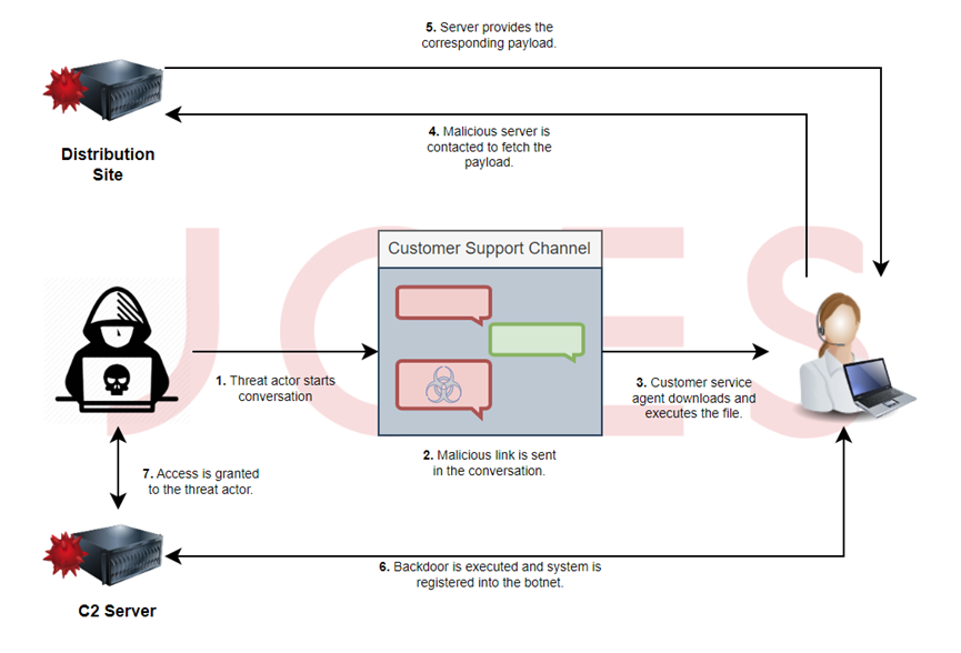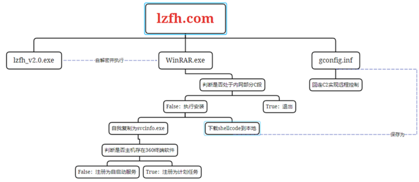 第一阶段:释放下载器。攻击者在对话期间向受害者分发两种不同类型的有效载荷。根据相关数据,LNK 文件是主要的有效载荷,也是第一个呈现给客户服务代理的文件。另一方面,VBS 文件仅作为备份选项共享,以防代理无法打开第一个文件。根据受害者执行的恶意文件(LNK 或 VBS),提供不同的有效负载。若执行 LNK ,将获取并执行一个包含IceBreaker 后门的额外 MSI 包,这是一种新的威胁,以前没有在任何其他公开可用的威胁情报报告中描述过。若执行 VBS ,将获取 Houdini RAT,这是一种基于 VBS 的远程访问木马,至少自 2013 年以来一直活跃。