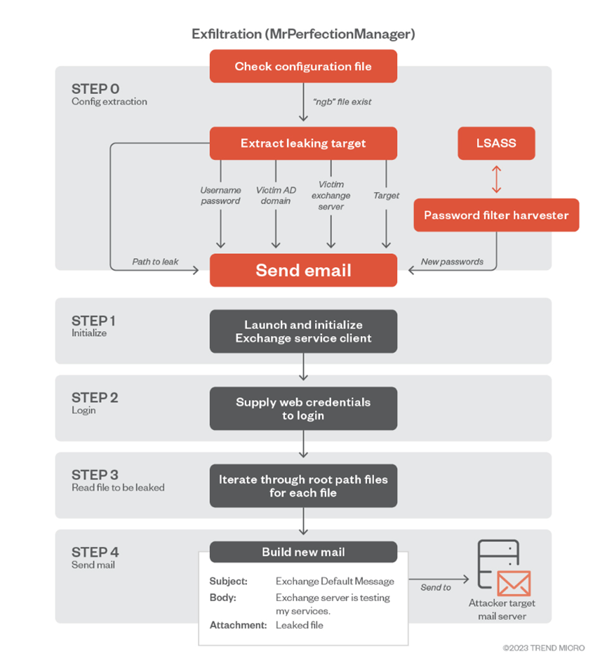 2022年12月,研究人员发现一个可疑的可执行文件(其检测为 Trojan.MSIL.REDCAP.AD),该文件已在多台计算机上投放并执行。经过调查将此攻击与高级持续威胁 (APT) 组织 APT34 联系起来,其主要目标是窃取用户的凭据。即使在密码重置或更改的情况下,恶意软件也能够将新凭据发送给威胁参与者。此外,在分析部署的后门变体后,发现该恶意软件能够使用新的过滤技术——滥用受感染的邮箱帐户,将窃取的数据从内部邮箱发送到攻击者控制的外部邮件帐户。虽然这不是一项新技术,但这是 APT34 首次将其用于其活动部署。按照这个分析,此活动的例程很可能只是更大部署链的一小部分。