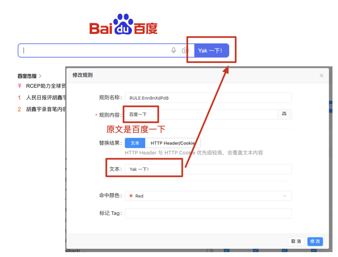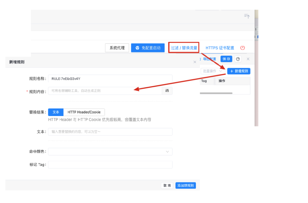 实际上这个功能的还有更深入的用法, 我们可以编写一个规则,这个规则能替换流量中的关键字为我们想要的替换结果,同时配置规则的生效位置。