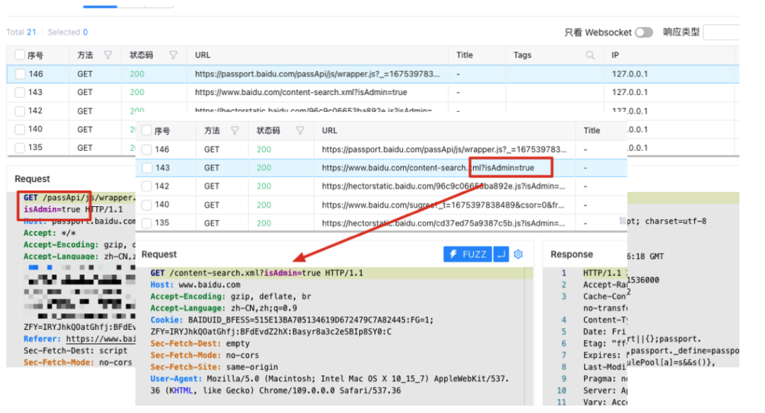 加载之后,通过一些流量,我们发现 isAdmin=true 被加在了每一个请求的 Get 参数位置。