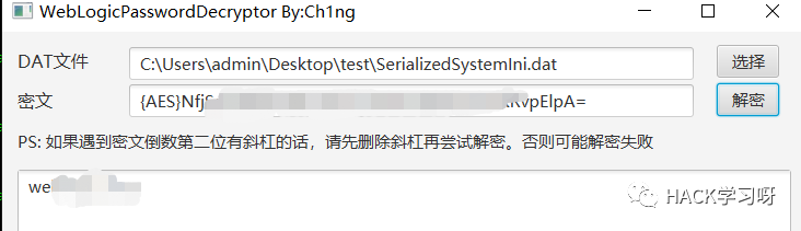 weblogic/user_projects/domains/base_domain/security/SerializedSystemIni.dat解密工具:https://github.com/Ch1ngg/WebLogicPasswordDecryptorUi