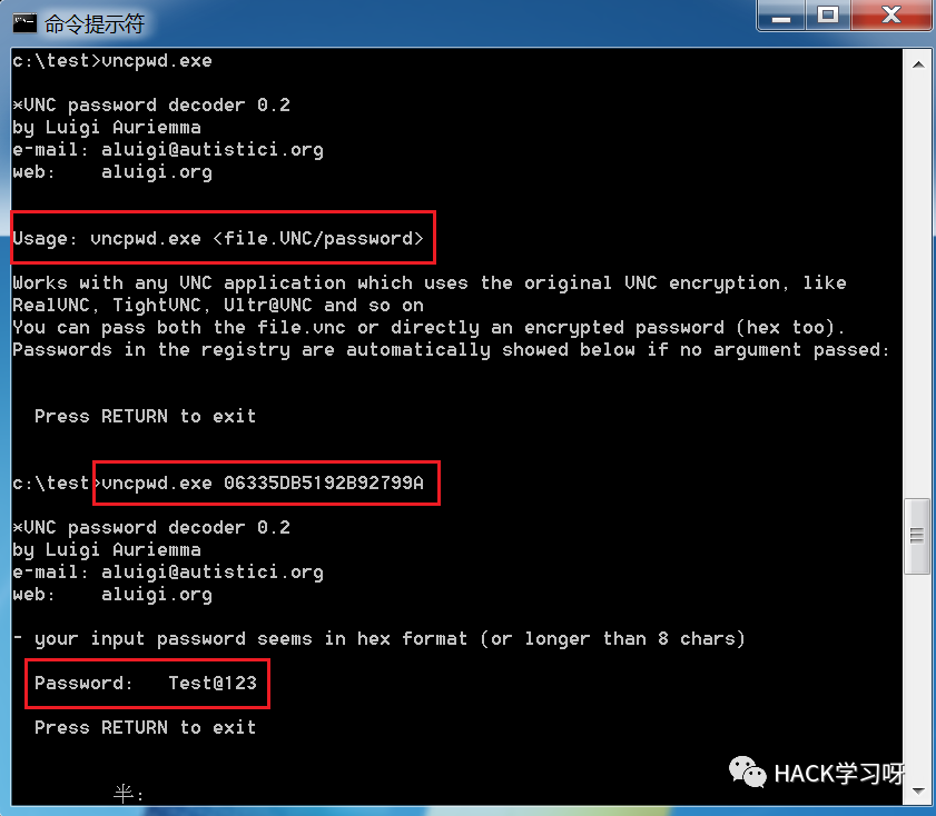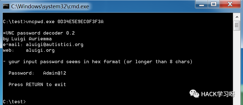 reg query HKEY_LOCAL_MACHINE\SOFTWARE\RealVNC\vncserver /v password解密工具:https://github.com/jeroennijhof/vncpwd
