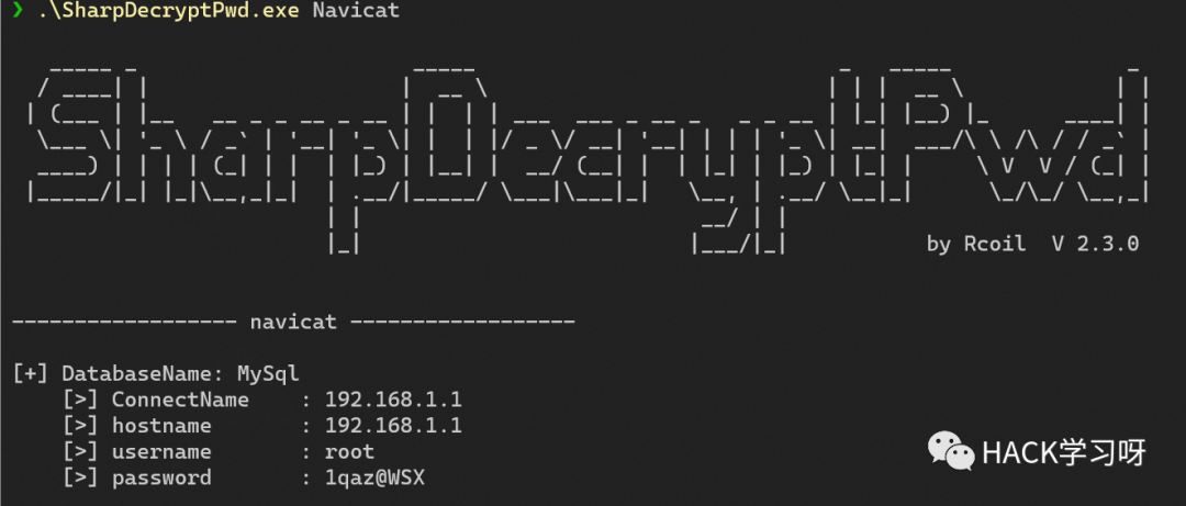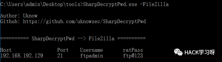 也可以利用SharpDecryptPwd直接获取密码 工具下载地址:https://github.com/uknowsec/SharpDecryptPwd