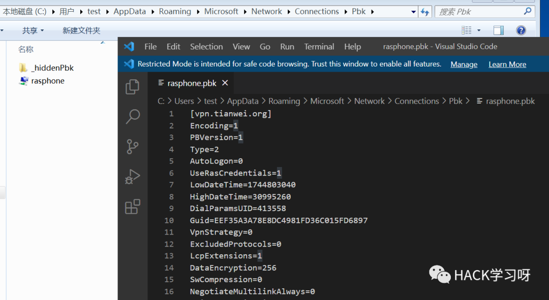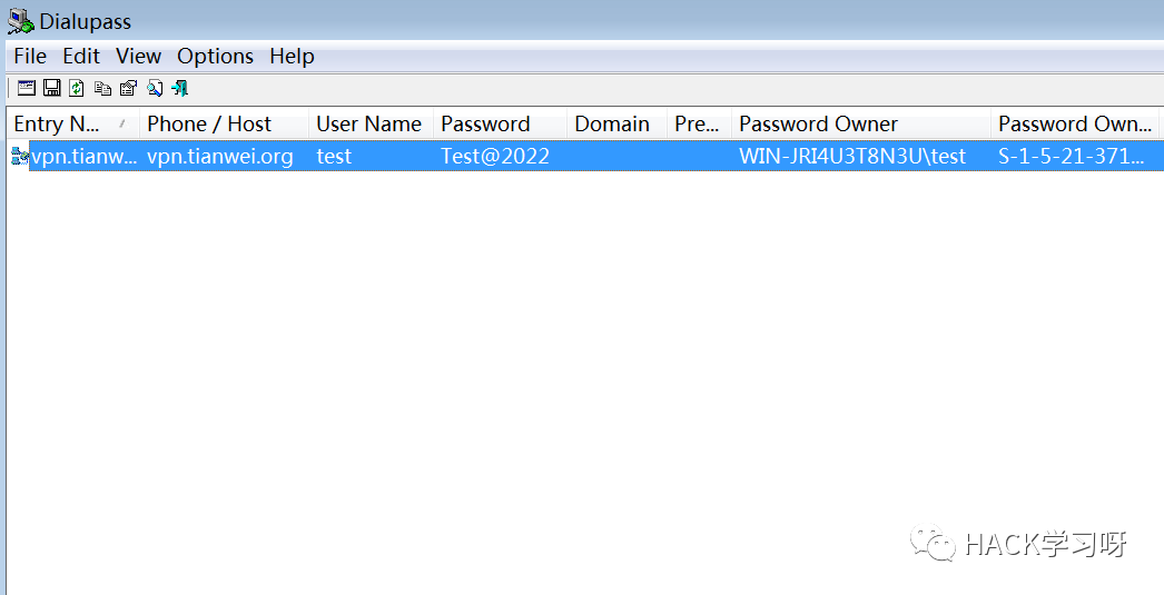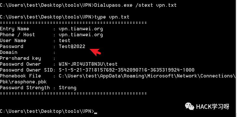 %AppData%\Roaming\Microsoft\Network\Connections\Pbk我们可以使用Dialupass来获取VPN密码信息,注意需要管理员权限,Dialupass使用说明和下载地址:https://www.nirsoft.net/utils/dialupass.html