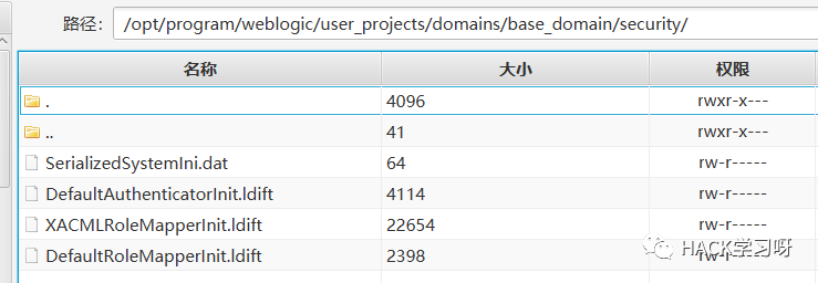 weblogic/user_projects/domains/base_domain/servers/AdminServer/security/boot.properties查找SerializedSystemIni.dat文件,其中包含了解密key: