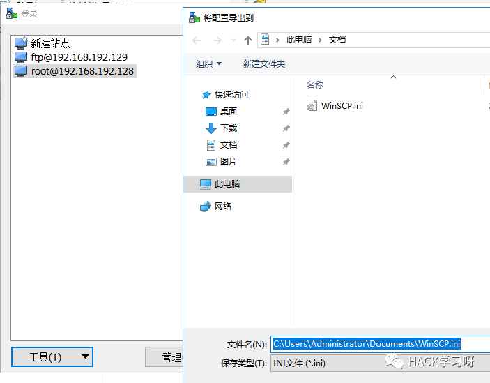 winscppwd.exe root 192.168.192.128 密文有时候管理员会导出配置为WinSCP.ini文件。