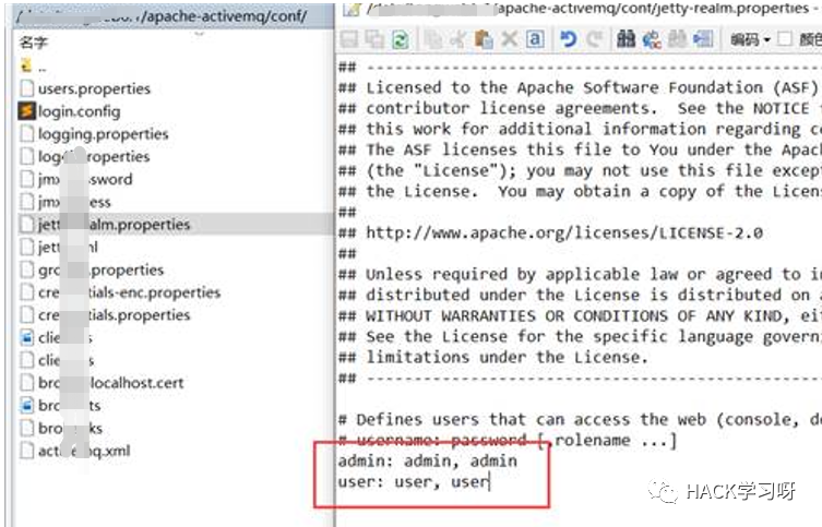 /apache-activemq/conf/jetty-realm.propertiesWebLogic 11gR1后采用了AES的加密方式,之前的版本采用的DES加密方式。每个Weblogic app的加密key都是随机生成的,所以不同服务器甚至同服务器不同应用上的weblogic都是用不同的密码加密的。