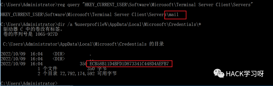 reg query "HKEY_CURRENT_USER\Software\Microsoft\Terminal Server Client\Servers"获取Credentials: