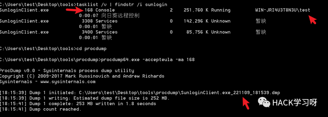 上不了线的情况下,也可以在webshell中来dump内存,保存到本地解密即可。Dump内存的工具有很多,这里我们使用procdump64.exe为例进行dump内存: