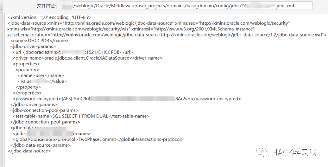 /weblogic/Oracle/Middleware/user_projects/domains/base_domain/config/jdbc/xxx-jdbc.xml成功解密