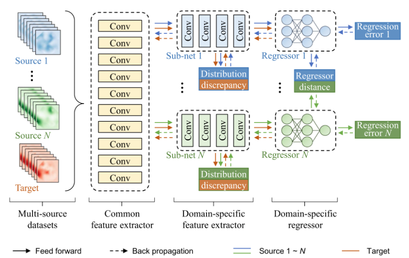(1)提出了一种新的面向多源域适应(MDA)回归任务的两阶段MDAN,该模型能够从多个源中提取域不变表示和监督,从而在目标域获得良好的泛化能力。