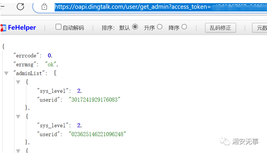 https://oapi.dingtalk.com/user/get_admin?access_token=XXXXXXXXXXXXXXXXXXXX2.钉钉通过获取管理员userid参数信息得到个人敏感信息