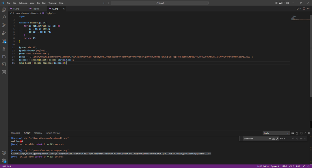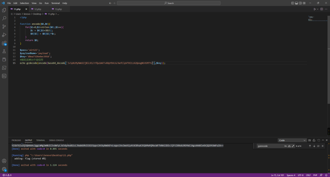 目前可以知道,服务器上的php源码是经过RC4加密的,题目加载自定义zend_test.so扩展,对php源码解密后进行解析。