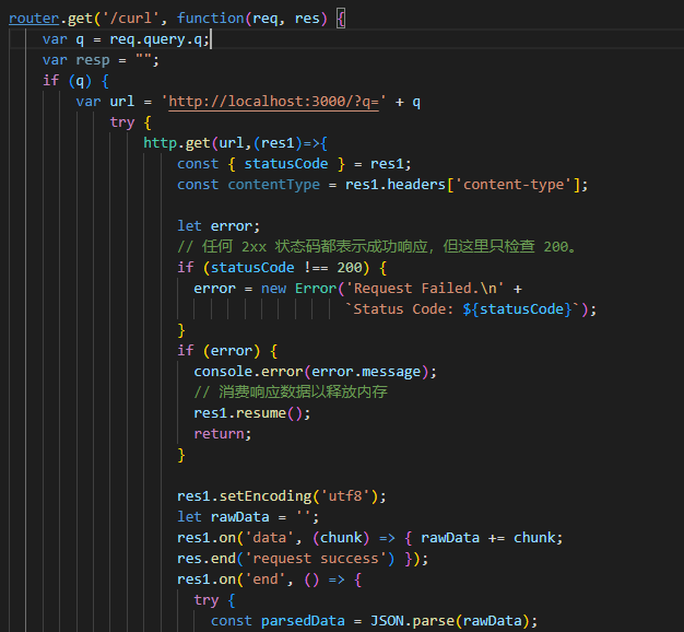 发现 /curl 路由可以发起http请求,可以触发ssrf: