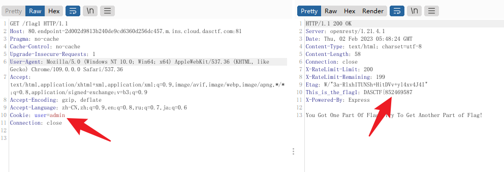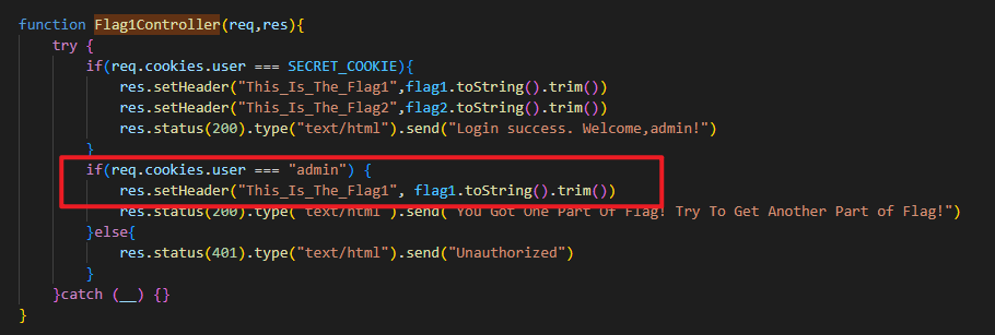 直接将cookie设为 user=admin 就可以拿到 flag1: