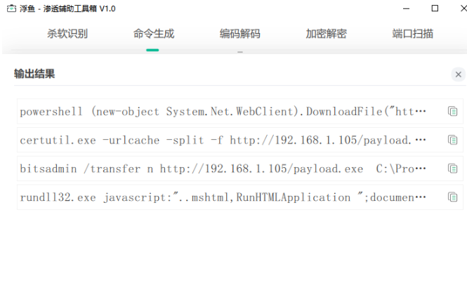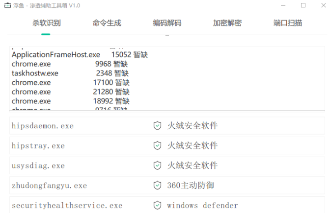使用C++与QML混合编程开发的渗透辅助工具,其中包含:杀软识别、命令生成、编码解码、加密解密、端口扫描等功能,目前还在完善中,大家可以持续关注下。项目地址: