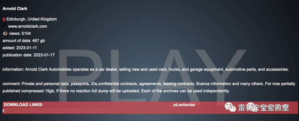 英国汽车零售商Arnold Clark日前通知客户,其个人信息可能因网络攻击而失窃。已经有勒索软件团伙表示对此负责,并声称掌握了数GB敏感信息。