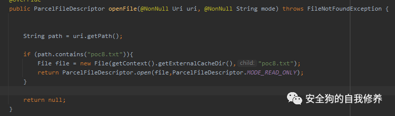this.getContentResolver().openInputStream(uri)会调用poc8中的openFile重载函数,也可被控制。