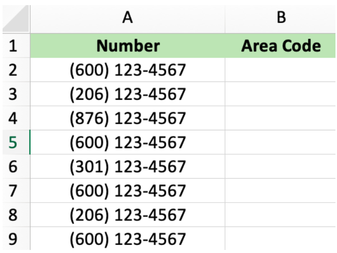 假设我们在下面列出了电话号码列表,并且我们想增加区号。