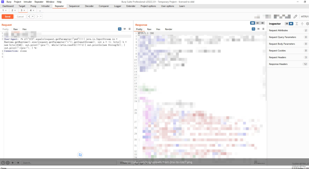 看起来简单,但是实际上涉及的知识点很多。比如陈师傅的文章中是在Jolokia中利用,jmx和Jolokia大同小异。另外陈师傅提到的jfr和vmLog写文件在实际环境中不存在,所以用到了spring4shell中的一环即AccessLogValue。