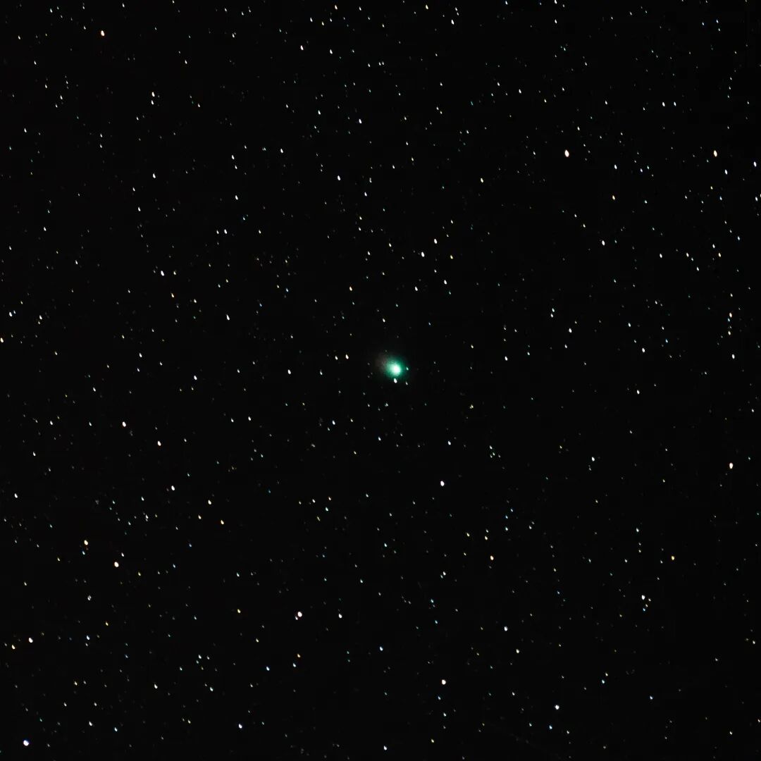 这颗彗星并不如营销号说的那样肉眼可见,仅在双筒望远镜里能看到一个特别绿的点。彗尾在肉眼里基本看不到,所以找目标花了很久。