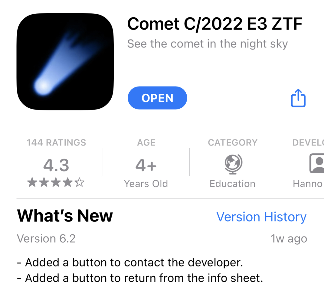 此外近期有人专门为定位 ZTF 彗星开发了一款应用,类似 SkyView 的 AR 界面。上次去的时候没装,看上去应该管用。