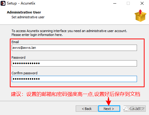 5. 输入 Email 和密码,后面登录要用(建议保存到文档)