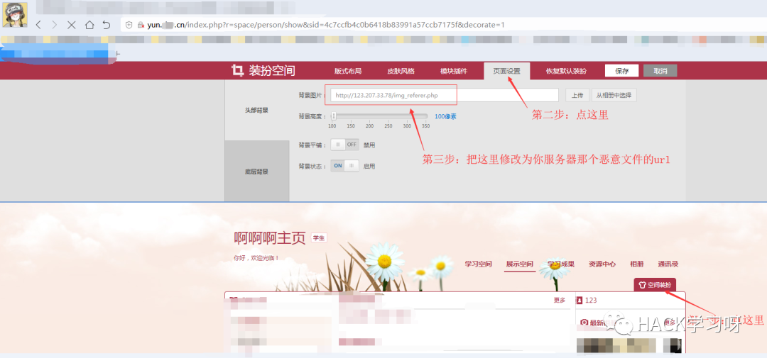 攻击者空间装扮 url:http://yun.test.com/index.php?r=space/person/show&sid=4c7ccfb4c0b6418b83991a57ccb7175f