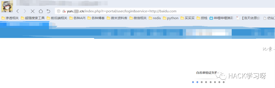 白名单触发:http://yun.test.com/index.php?r=portal/user/login&service=http://baidu.com
