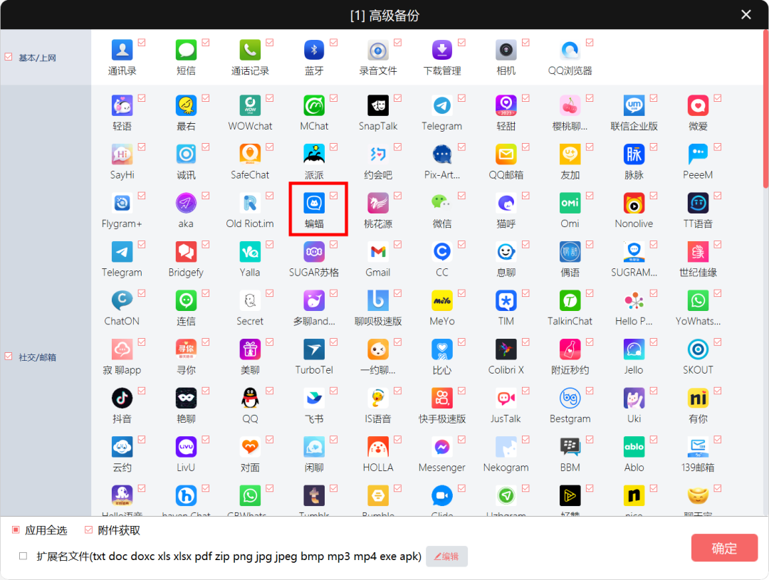 部分小众社交APP具备聊天数据备份功能,这种情况下可以通过软件自带备份功能较为方便地提取数据。