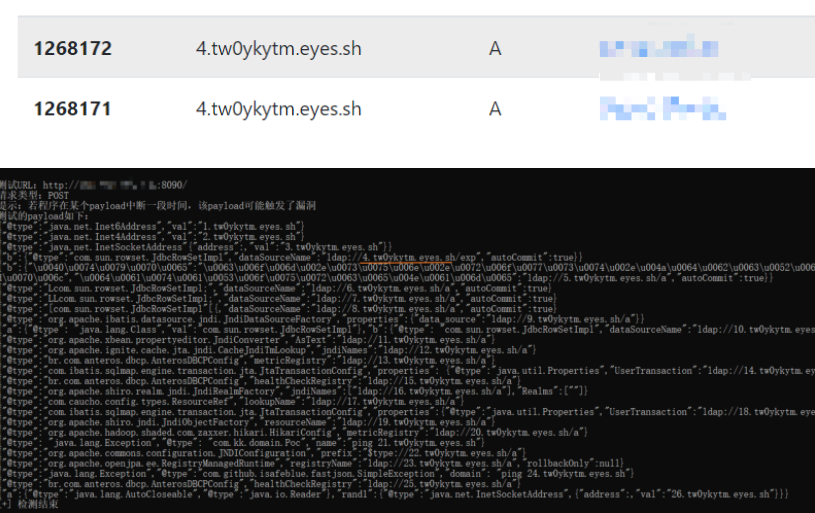 2、若出现dnslog回弹,可根据前面的编号去寻找对应的payload