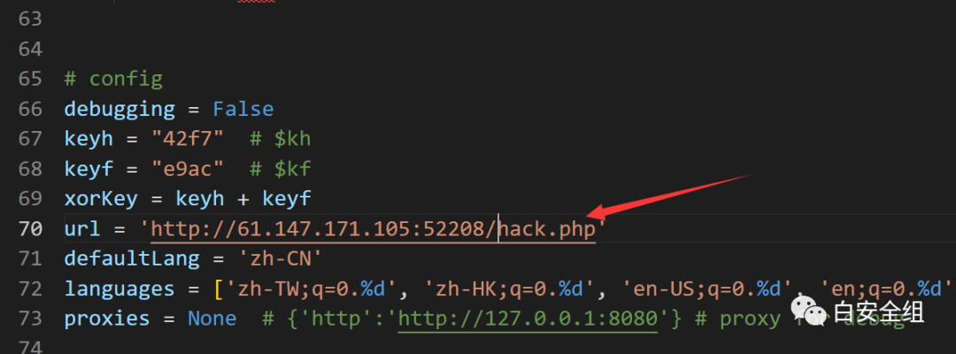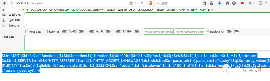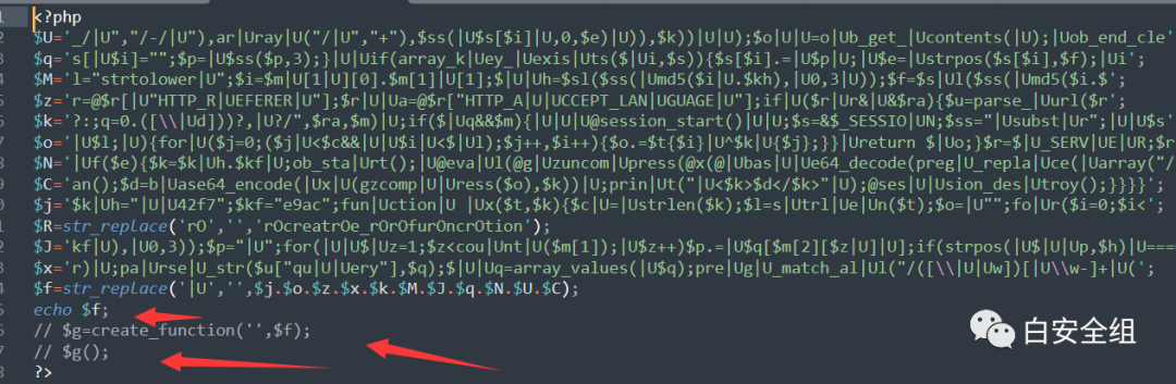 打开这个文件我们发现这里应该是一个拼接的一句话木马,所以我们将他解密后的内容输出。